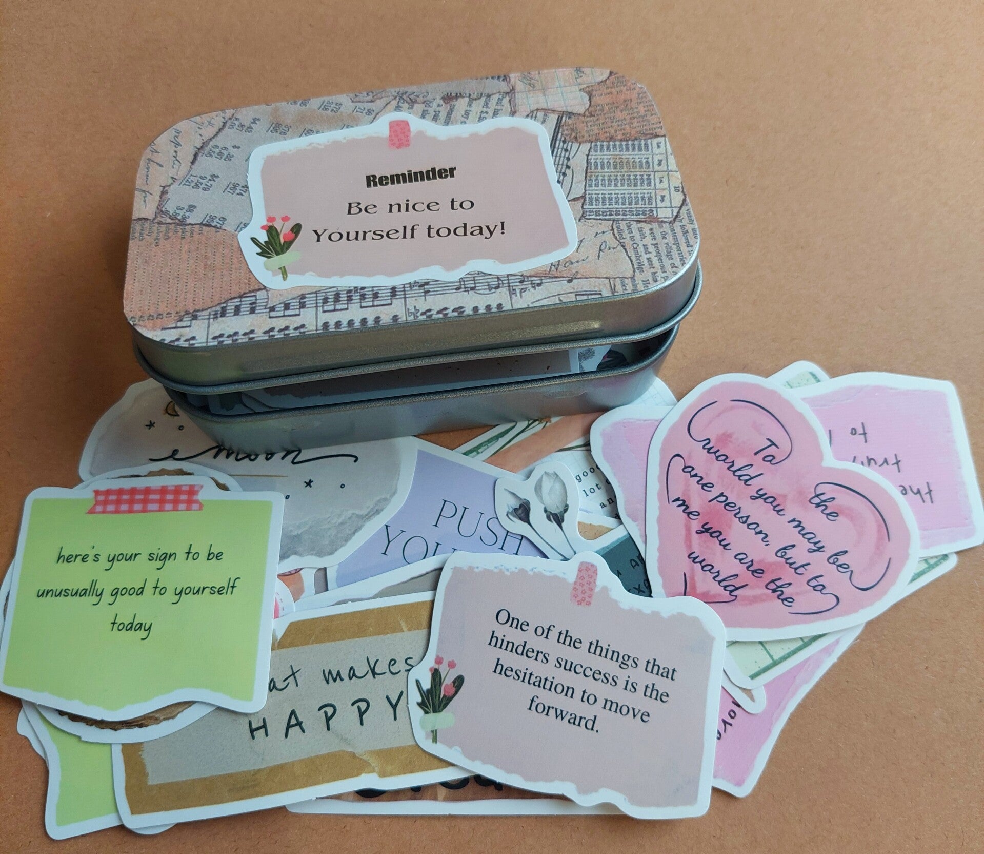 Rechthoekig metalen blikje van 9,5x6x2 cm.